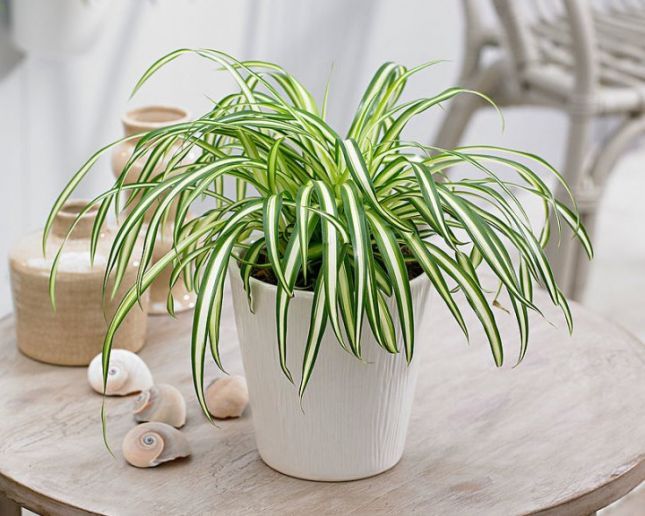 Aussi connue sous le nom de Chlorophytum également, la plante araignée résiste parfaitement lorsqu’elle a peu de lumière. Néanmoins, si elle n’a vraiment pas d’éclairage, elle peut perdre de sa couleur.